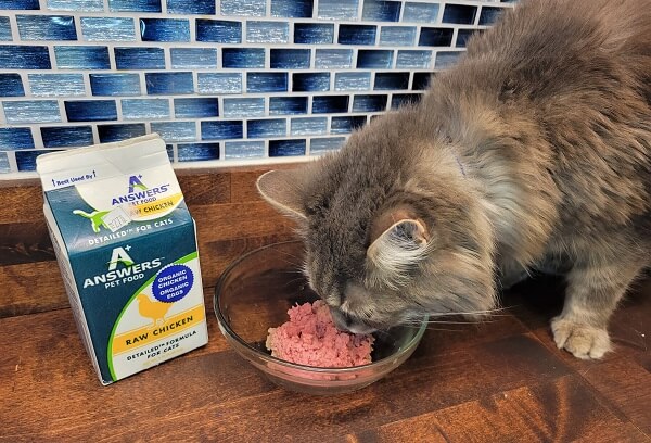 While raw cat food is often more expensive than dry and sometimes canned food, Answers Pet Food is moderately priced within its category. Complete and balanced Detailed Formula recipes range from $0.71 to $1.16 per pound.