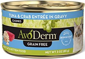 | Avoderm Natural Grain-Free Tuna & Crab Entree in Gravy Canned Cat Food | Wet | $0.45 per oz | C+ |