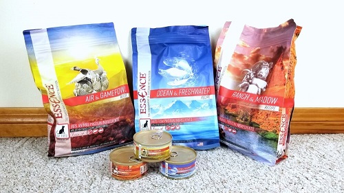 Essence foods come in three recipes, each available in a dry and canned variety. Choose from Air & Gamefowl, Ranch & Meadow, and Ocean & Freshwater fish formulas.