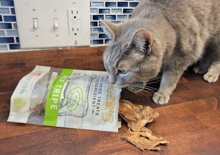 To test Evanger’s cat food, I ordered a 4.4-pound bag of Evanger’s Grain-Free Meat Lover’s Medley with Rabbit Dry Cat food as well as Evanger’s Super Premium Rabbit & Quail Dinner canned food and Nothing But Natural Beef Tripe cat treats.