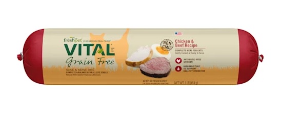 | Freshpet Vital Grain Free Chicken & Beef Cat Roll | Fresh Roll | $0.33 per oz | C |