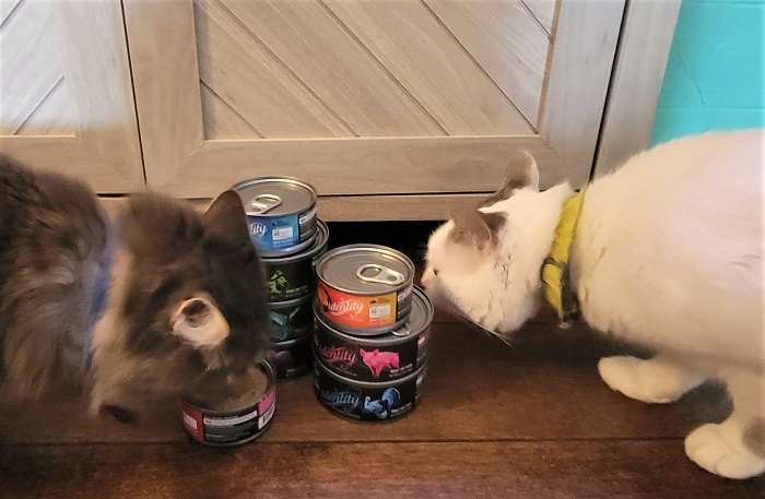 My cats were immediately interested when I opened the can (what cat doesn’t come running at the sound of a can opening?). They happily gobbled up the food – they were particularly fond of the more unique flavors like quail and they always love salmon.
