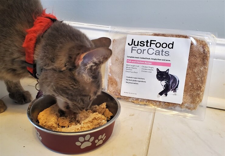 JustCats offers a single fresh food recipe for cats, their JustCats Fish & Chicken formula. Kate Barrington / Cats.com