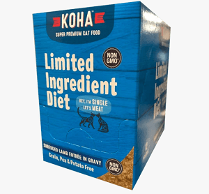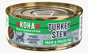 Koha cat food is sold in 3-ounce and 5.5-ounce cans as well as 2.8-ounce pouches. Both their limited ingredient pates and limited ingredient shredded foods are priced little over $0.50 per ounce. The most affordable line of products seems to be the minimal ingredient stews, priced around $0.33/ounce.