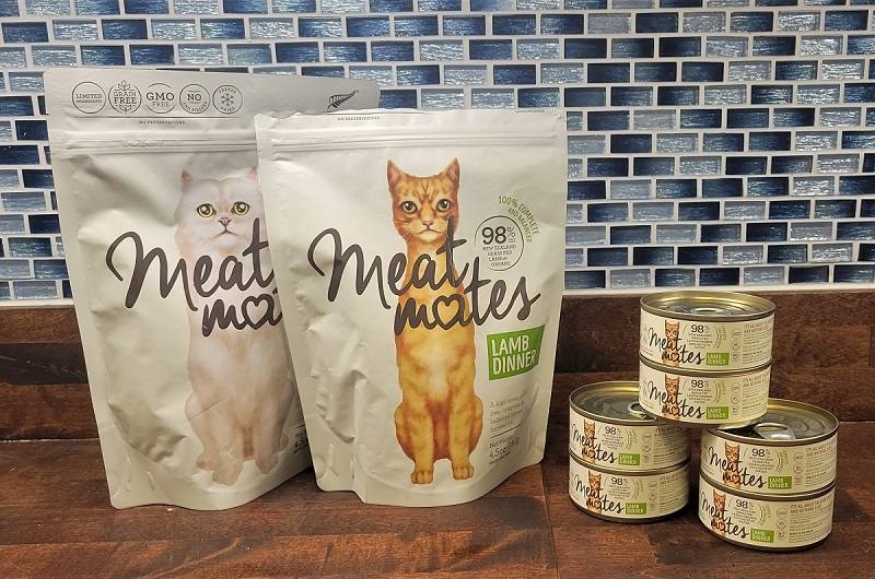 To test Meat Mates, I ordered a case of the Lamb Dinner Grain-Free Wet Food, a bag of freeze-dried beef cat treats, and both the Chicken Dinner and Lamb Dinner freeze-dried foods.