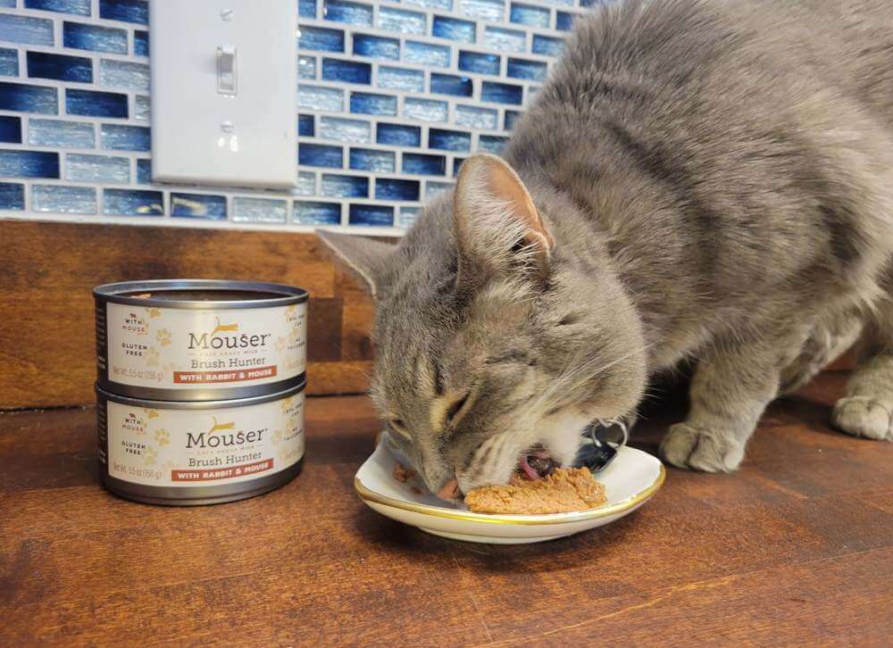 The Mouser line of cat food products from Muridae Pet includes four canned cat food recipes. All four consist of 97% meat, though the exact amount of mouse meat in each recipe is proprietary. The food is packaged in 5.5-ounce BPA-free cans and made without carbohydrate fillers, thickeners, or artificial additives.