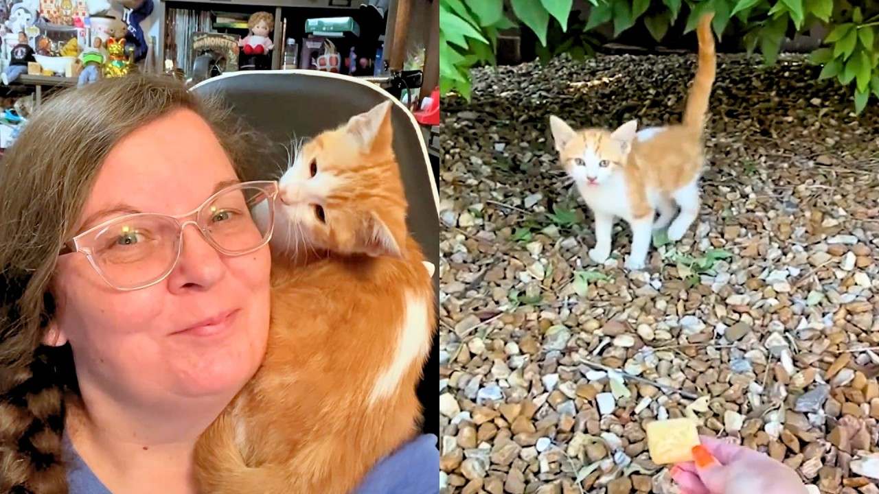 Mimosa the kitten was on a college campus crying out for help when her mom found her. “She was so loud. I can’t believe no one else stopped,” she said.