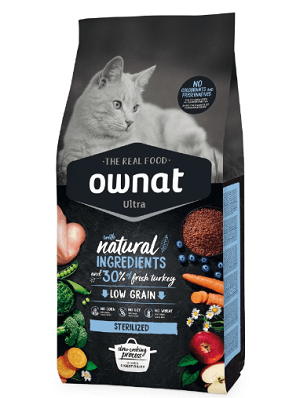 | Ownat Ultra Sterilized Cat Food | Dry | Turkey | 3680 kcal per kg |