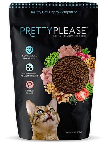 Pretty Please is a proprietary formula that, according to the brand, contains “a host of feline nutritionist-designed ingredients formulated to keep cats optimally healthy, energetic, strong, and living long.”