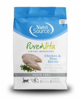 | Pure Vita Grain Free Chicken and Peas Entrée | Dry | $4.41 per lb | B- |