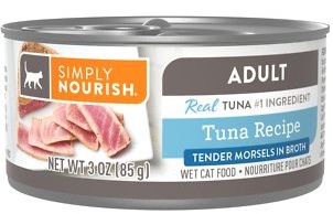 | Simply Nourish Essentials Tuna Recipe Adult Chunks in Gravy Canned Cat Food | Wet | $0.30 per oz | B- |