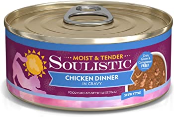 | Soulistic Moist & Tender Chicken Dinner in Gravy Wet Cat Food | Wet | $0.4 per oz | A- |